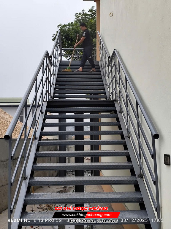 - Làm cầu thang sắt kiểu đơn giản cho nhà trọ, nhà dân cấp 4, cầu thang nhà kho, nhà xưởng.